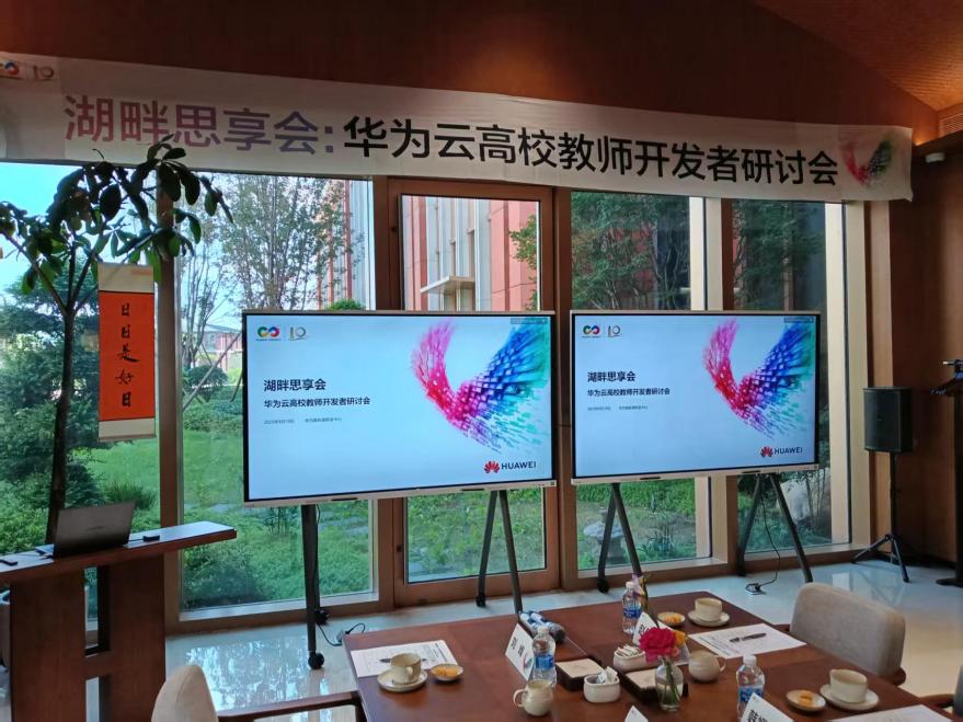 9月19日上午,曹院长与田向东、修国众老师等赴华为练秋湖园区,参加“湖畔思享会——华为云高校教师开发者研讨会”。华为云高校生态总监罗静首先介绍了高校业务的最新布局;上海政企服务总监付党立深入解读了华为企业文化;开发者空间首席架构师Eric现场演示了开发内环与云开发环境;数据库内核工程师Matheus Aires分享了“让数据生智、为AI加速”的云数据库技术;高级工程师Kyle Cheng则就开源开发者生态进行了交流。