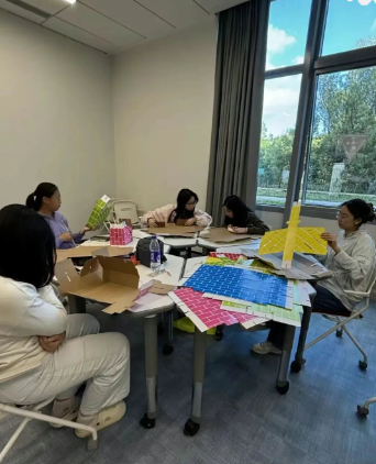 团队队旗设计环节,同学们手持旗帜与彩色笔,共同商讨设计专属队旗。从小组名称、标志到口号,每个元素都凝聚着成员创意,展示环节中,各组代表详细解读队旗内涵,最终通过投票评选出最受欢迎队旗,有效激发了团队归属感;“我是谁” 互评环节,同学们认真为他人写下真实客观的印象评,阅读评价后的分享讨论环节,帮助学生进一步认识自我、了解他人,深化了彼此间的沟通与理解;“诺亚方舟”挑战时,学生们相互搀扶、调整姿势,在坚持与协作中考验默契,深刻体会团队合作的力量;“垒宝塔”比拼,成员们分工协作、大胆尝试,在竞争中激发创造力,最终以宝塔高度与稳定性评选获胜小组,强化了团队凝聚力。