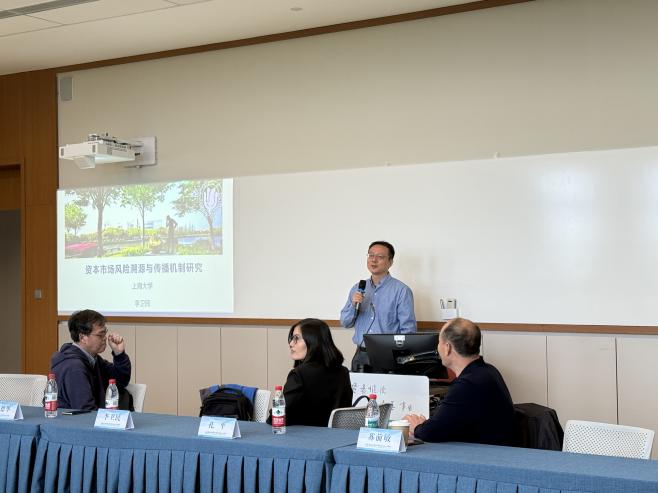 上海大学的李卫民教授分享的专题是:资本市场风险溯源与传播机制研究,他就项目的背景与意义、研究挑战、市场多关系时序网络建模、风险源检测、风险度量、风险险传播、实证研究等方面开展了深入交流,为参会者全面分享了项目的研究思路、研究方法和研究成功,很有启发性。