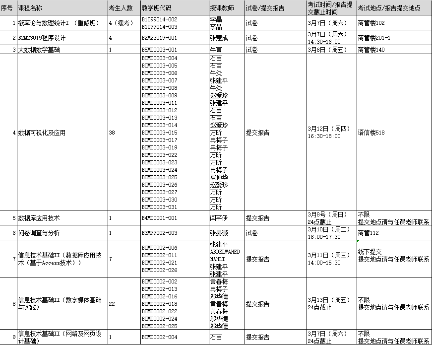 2026年春季院考、随堂考课程期初缓补考安排及考生名单已公示在下方,学生具体信息请务必参考附件: